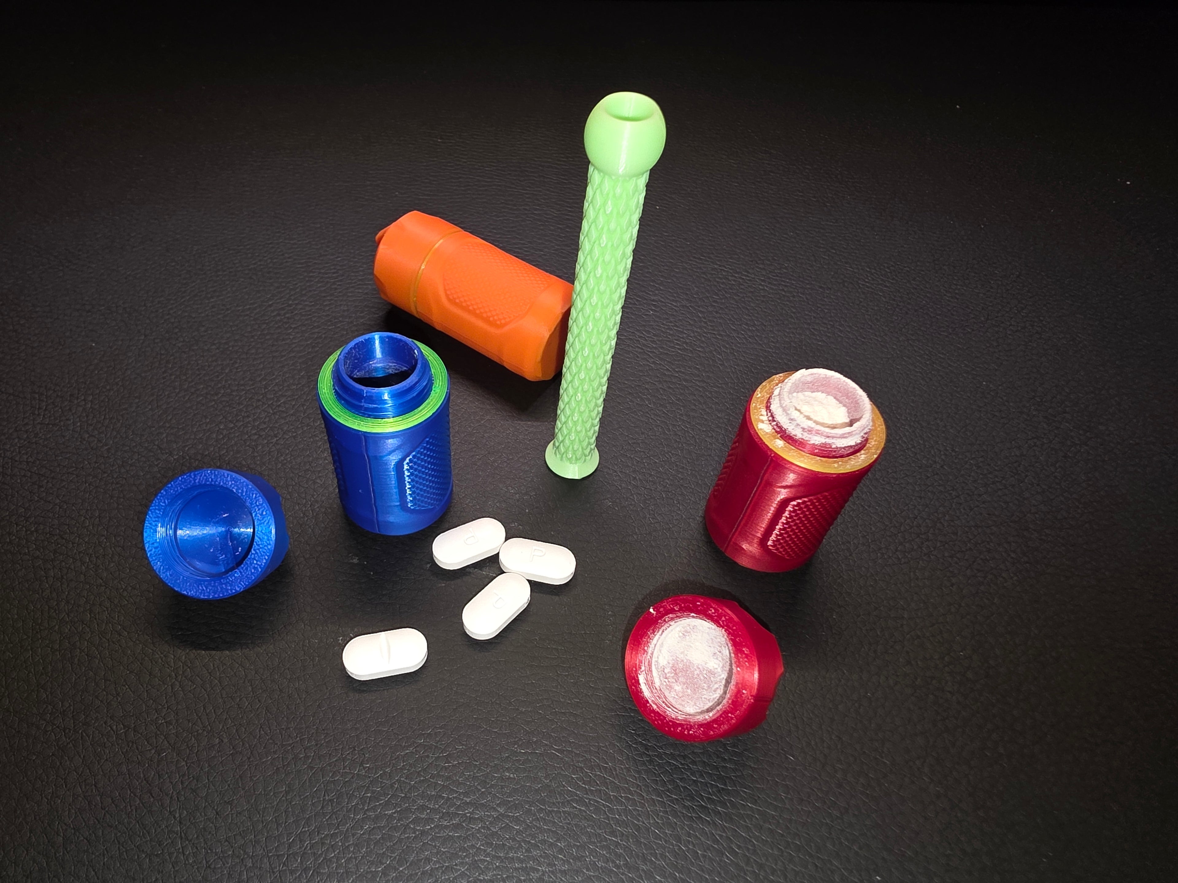 Nooit meer je medicijnen of supplementen vergeten! Deze handige pillendoosjes zijn volledig 3D-geprint en beschikbaar in verschillende vrolijke kleuren zoals blauw, rood en oranje. handig ook om aan je sleutelbos te bevestigen